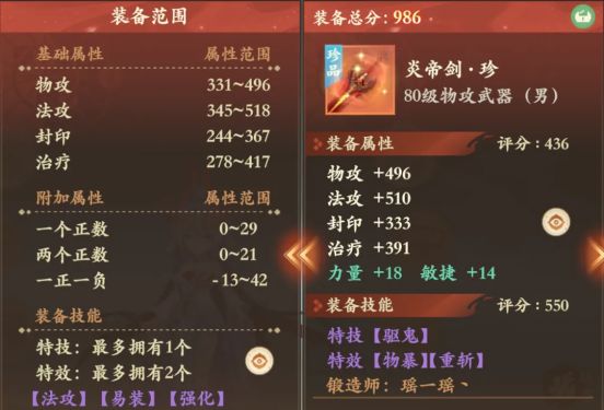 雷震子:80级满物攻三特炎帝剑,满基础496物攻无可挑剔,特效物暴和重斩看着非常养眼舒服,或许双加32有点美中不足,但三特满基础顶级武器还是属于大佬的标配极品!