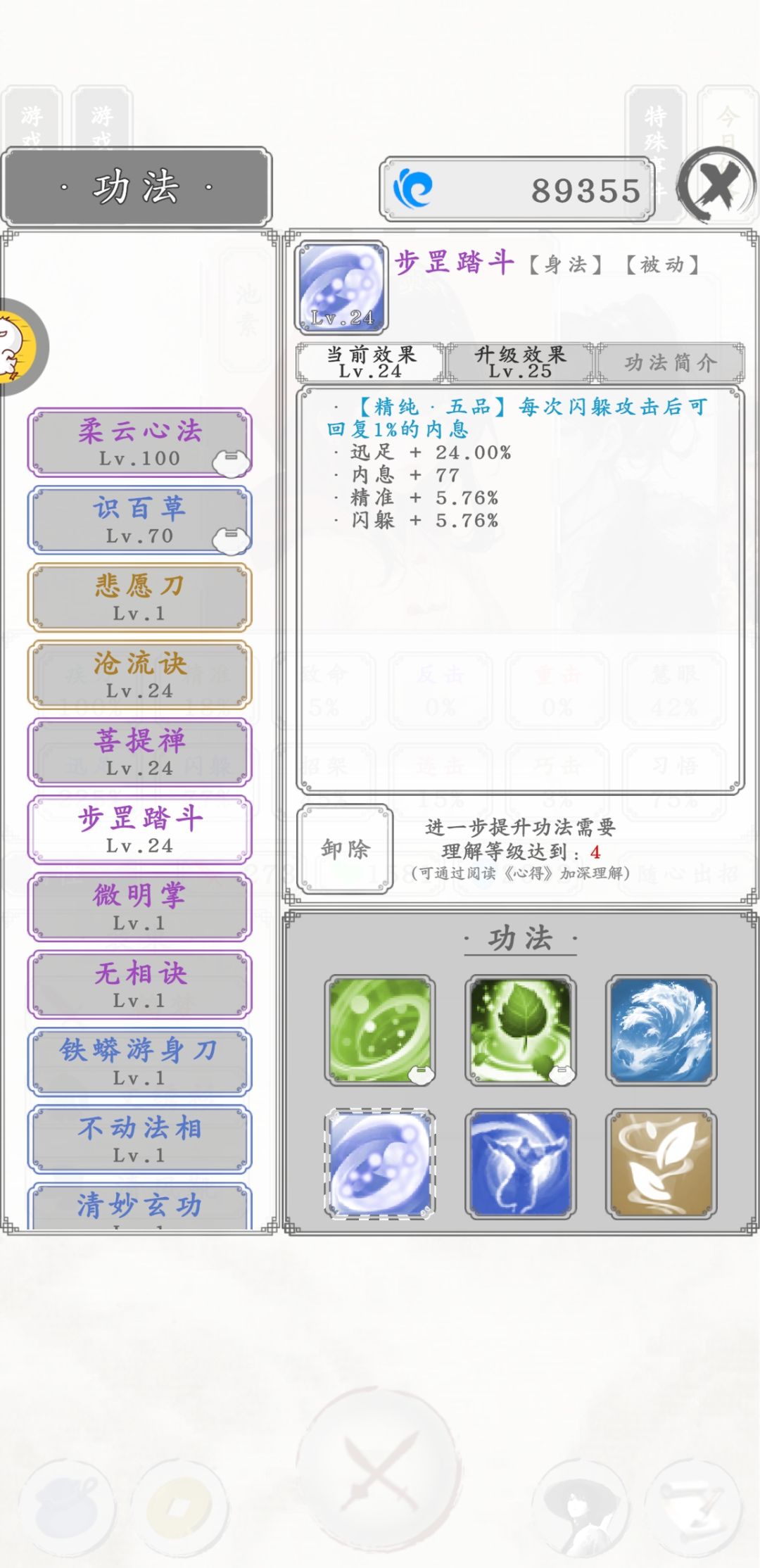 4. 玩的第二天,未改数据,只开了个加速,带紫色专武后闪避 130 已经可以无伤单刷藏经阁 99 层;带经验、爆率武器的话闪避高于 100 仍可单刷藏经阁 70 层。