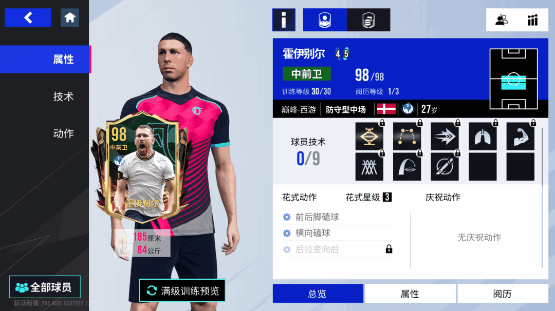 而在进攻端,霍伊别尔的盘带传球技术也能成为球队的破局关键,金色【拦截】技术让对方难以逾越他的防守。搭配上他高大的身板与100的控球,能从容面对对手的逼抢,将球牢牢护在脚下。在转身寻得空间之后,【长传】【大力传球】【直塞】技术和破百的传球能力相辅相成,能让霍伊别尔在电光火石间送出手术刀般的传球撕裂对手的防线,为锋线的队友送去致命一传!