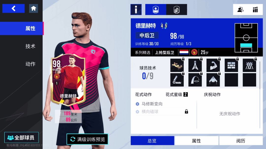德里赫特是一名极其凶悍的上抢中卫,往往能抢先一步破坏对手的进攻意图,让对手苦不堪言,金色【滑铲】技术赋予了他更高的滑铲精准度,让“德里赫特处刑曲”响彻球场,【抢断】【封堵】【强壮】【拦截】技术更是将德里赫特武装到了牙齿,能用各种方法化解对手的来犯!不仅如此,接近一米九身高的德里赫特还自带【空霸】和【轰炸机】技术,在攻防两端的高空球争顶都有着绝对话语权,不仅如此,德里赫特的传球能力也是后卫中的佼佼者,93的长传搭配【长传】技术,让他在断下皮球后就地发动快攻,为球队创造出更多机会!