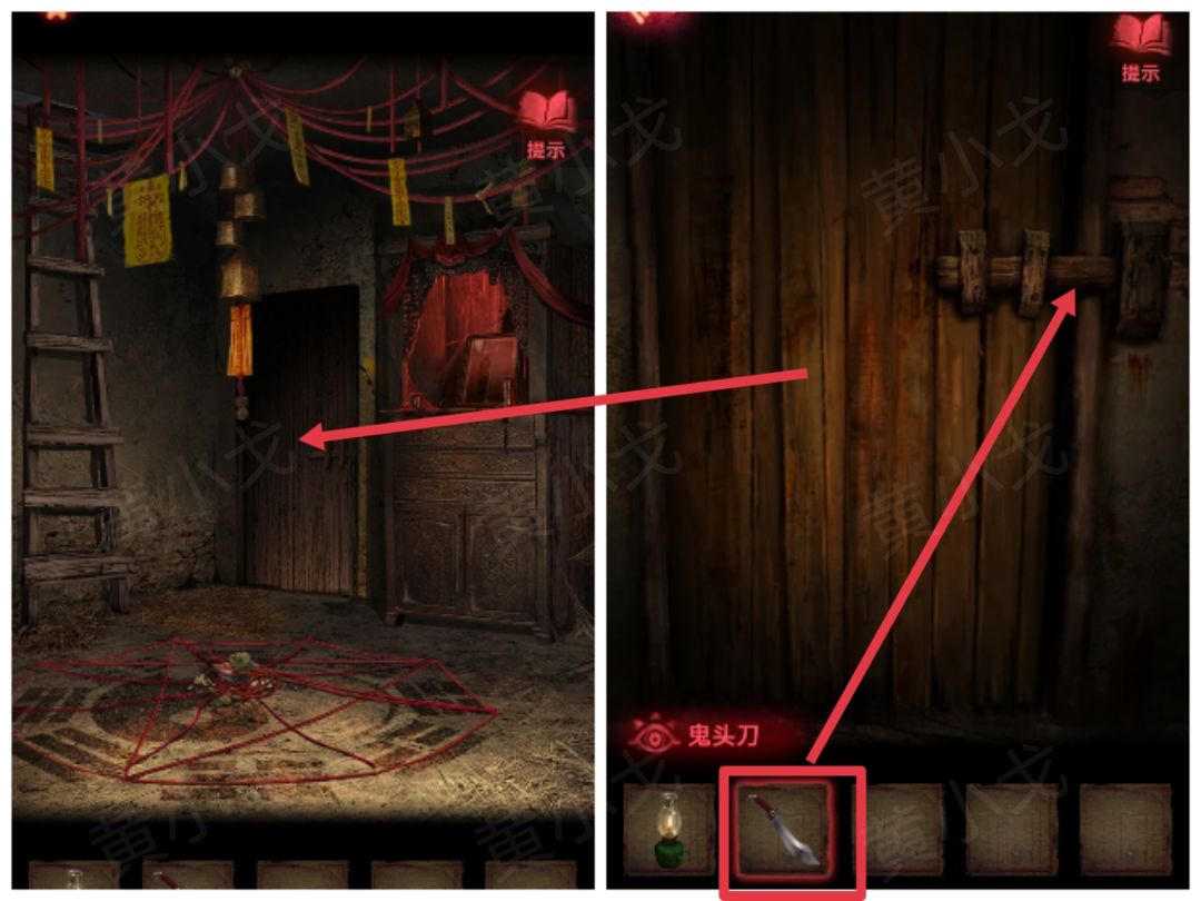 36.点击木门,用【鬼头刀】劈开门插,触发剧情