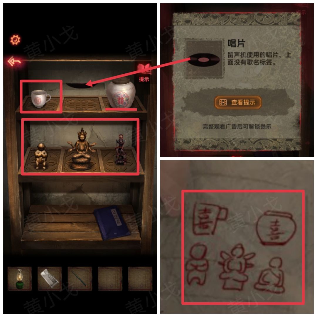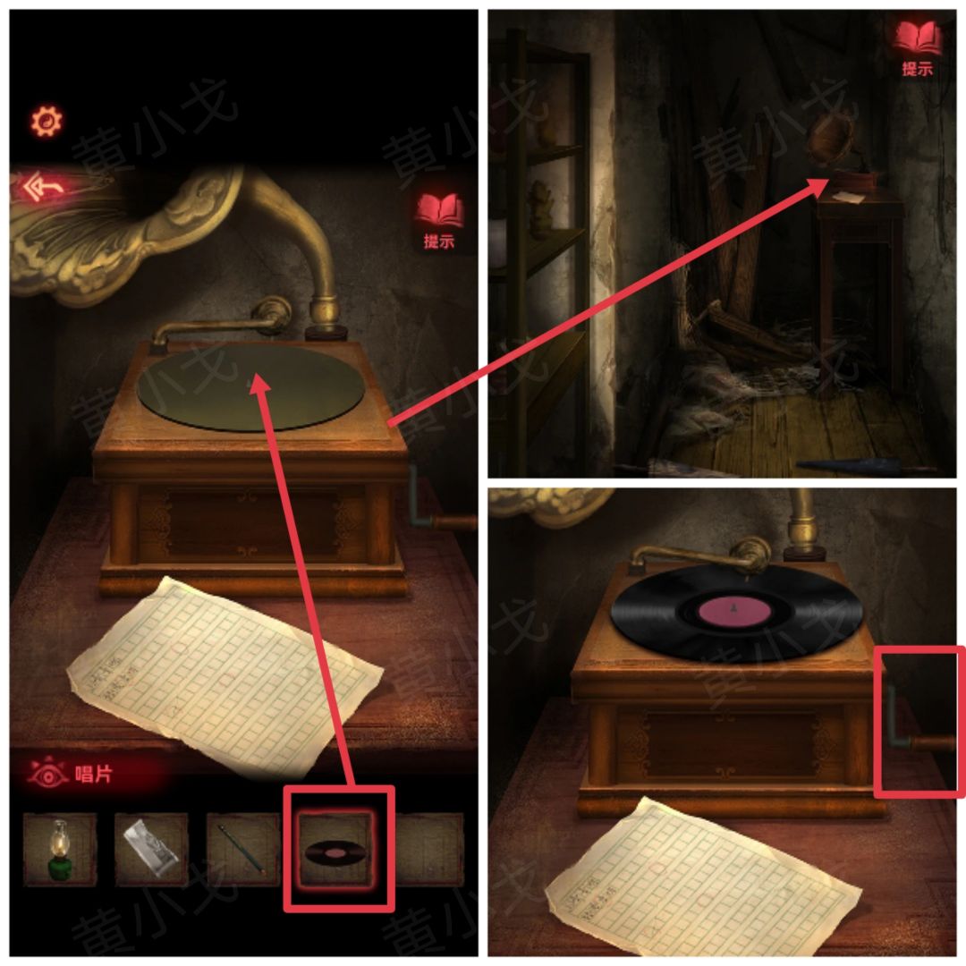 26.根据【反字日记】上的线索,调整雕像和杯子的位置;打开暗格,获得【唱片】