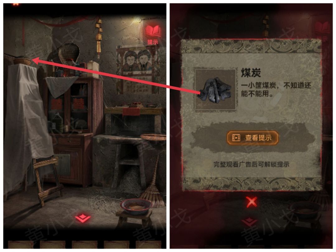 2.点击拾取木梯上的【煤炭】