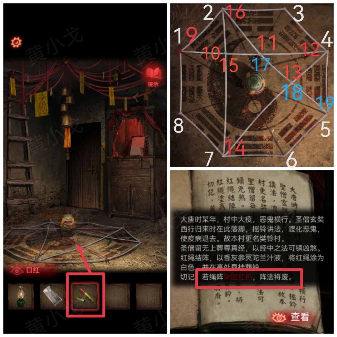 33.根据书上的线索,对阵法使用【口红】;完成一笔连线小游戏