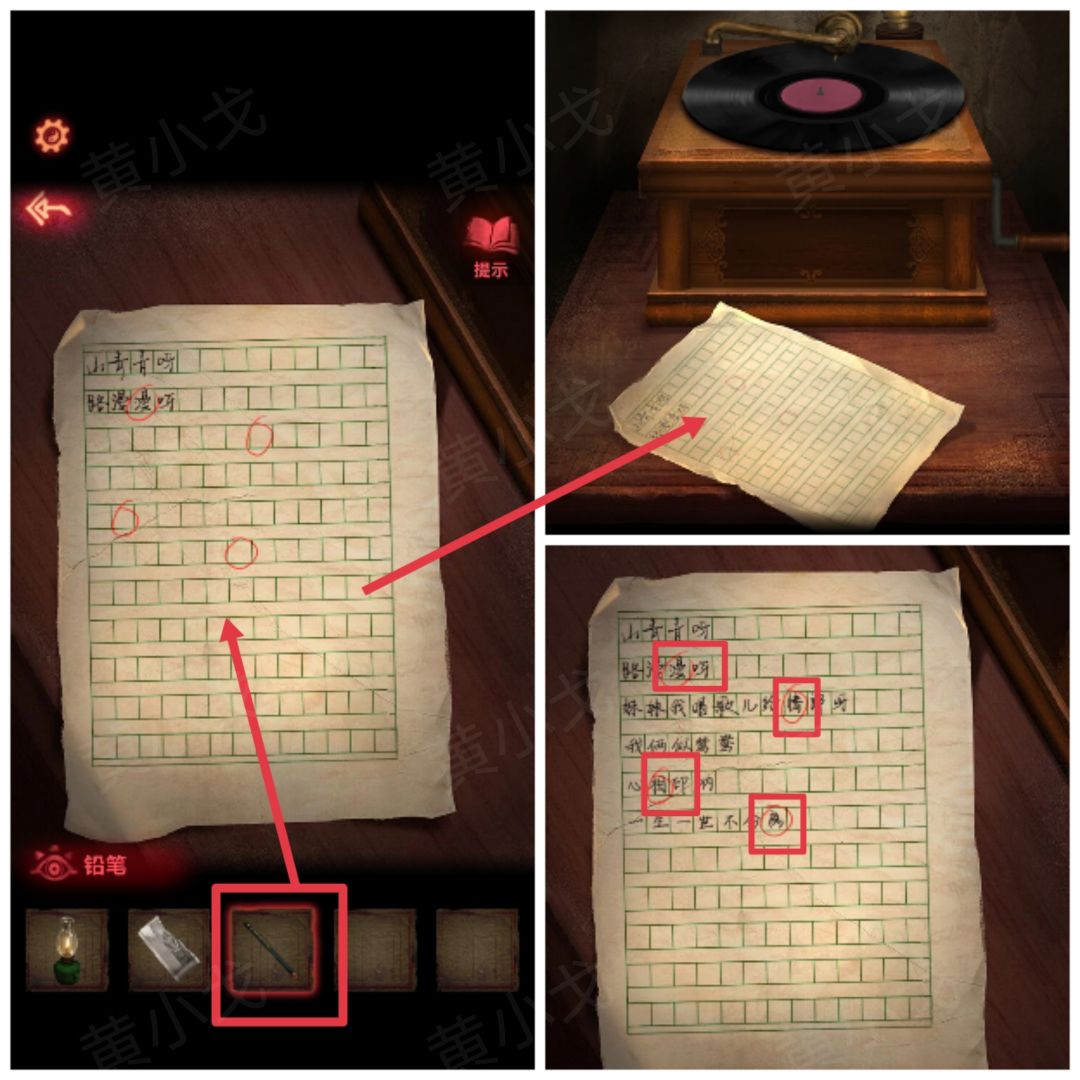29.点击桌子上的纸,用【铅笔】写下歌词,获得线索
