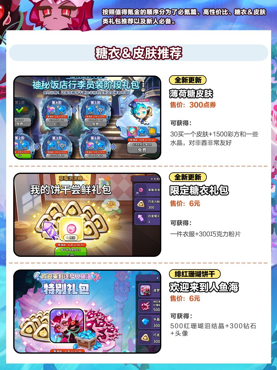 人鱼海版本礼包推荐,本期推荐顺序分为了必氪篇、高性价比、糖衣&皮肤类礼包推荐以及新人必备。