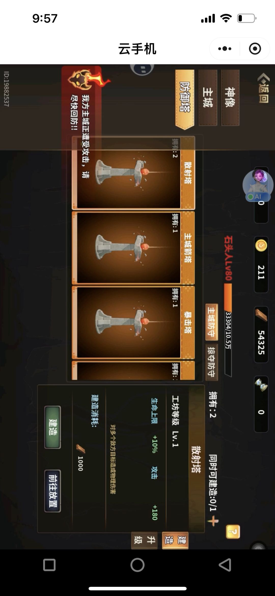 二:游戏内容单人和组队,进入游戏选择关卡难度后有30层打完就可以通关站力后感也可以提前挑战。游戏内可以提升1.神像(资源获取途径金币和木材)2.主城(皮肉升级和功能解锁)3.防御塔(可以理解成增益buff)。每一个种类只能同时升级一次(读条)