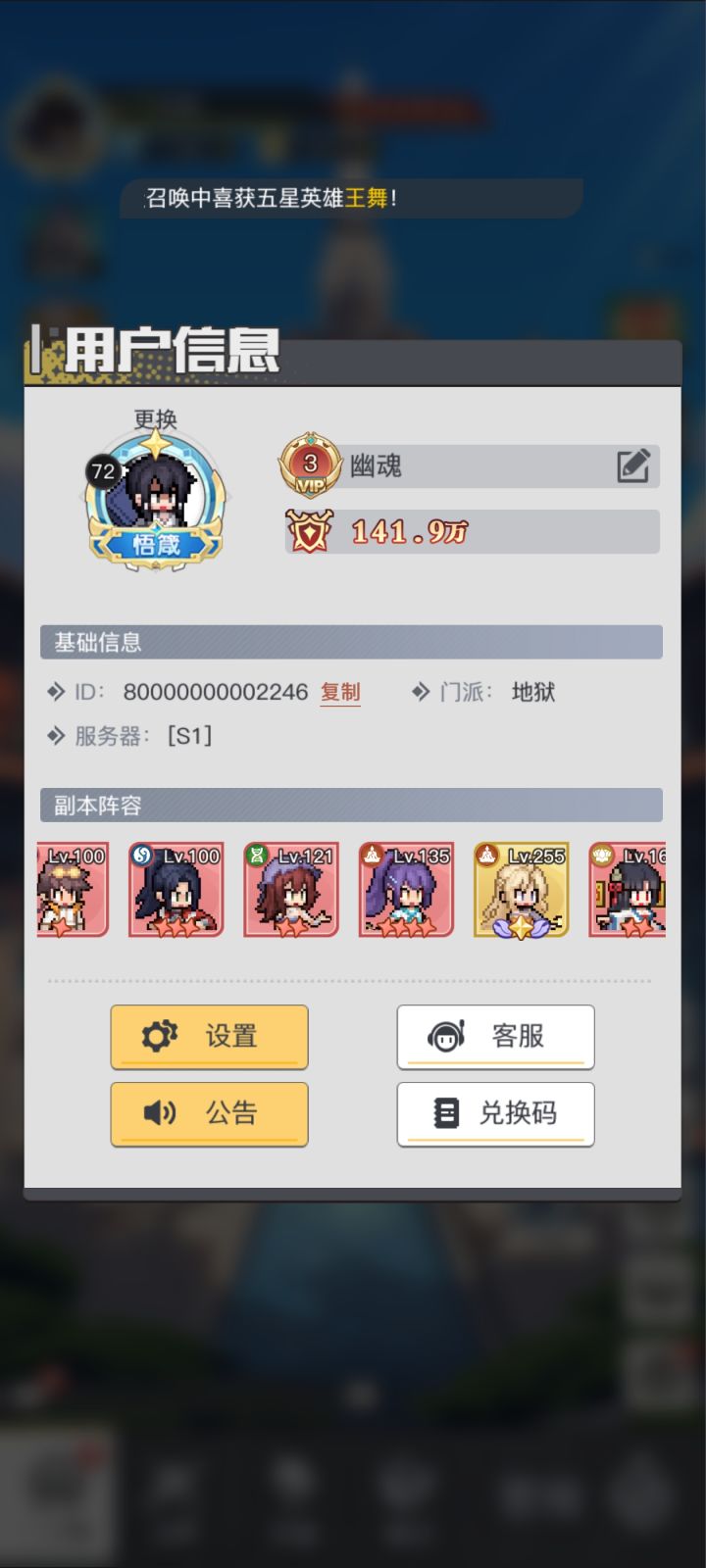 (可以选择加入强的门派获取门派币,或者达到V2自己建门派多造几个小号进来完成心愿墙,心愿墙可以获取5星碎片和高级抽卡令,自己创建门派门派战大号拿第一奖励,奖励还是不错的)