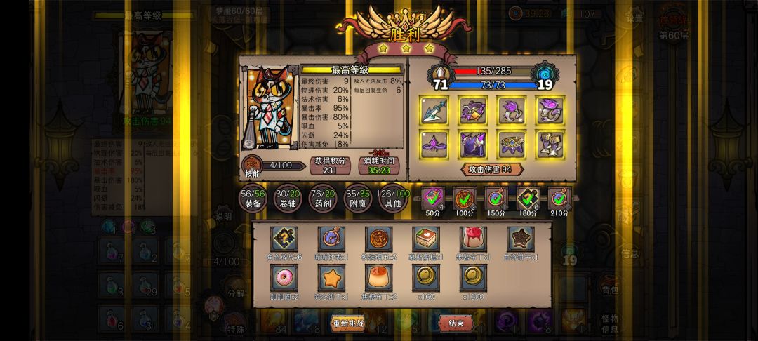 卷轴:就是最底下一栏里的火球法术那些,结算包括两部分,普通第一次使用给积分(只有八个给10分),和最终boss不使用卷轴给积分(20分)