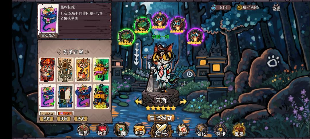 首先,游戏内容并不多,怪物卡牌加一块不到五十张,三章节里,怪物技能会有重复,无养成的情况下关卡会有一些难度,需要一些游戏理解和手法。