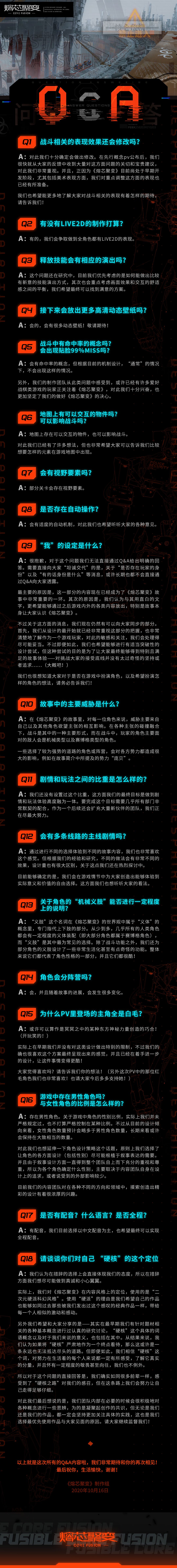 《熔芯聚变》 2020.10.16 第1次Q&A
