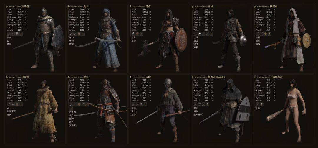 《艾尔登法环》各职业初始属性及出生礼物一览