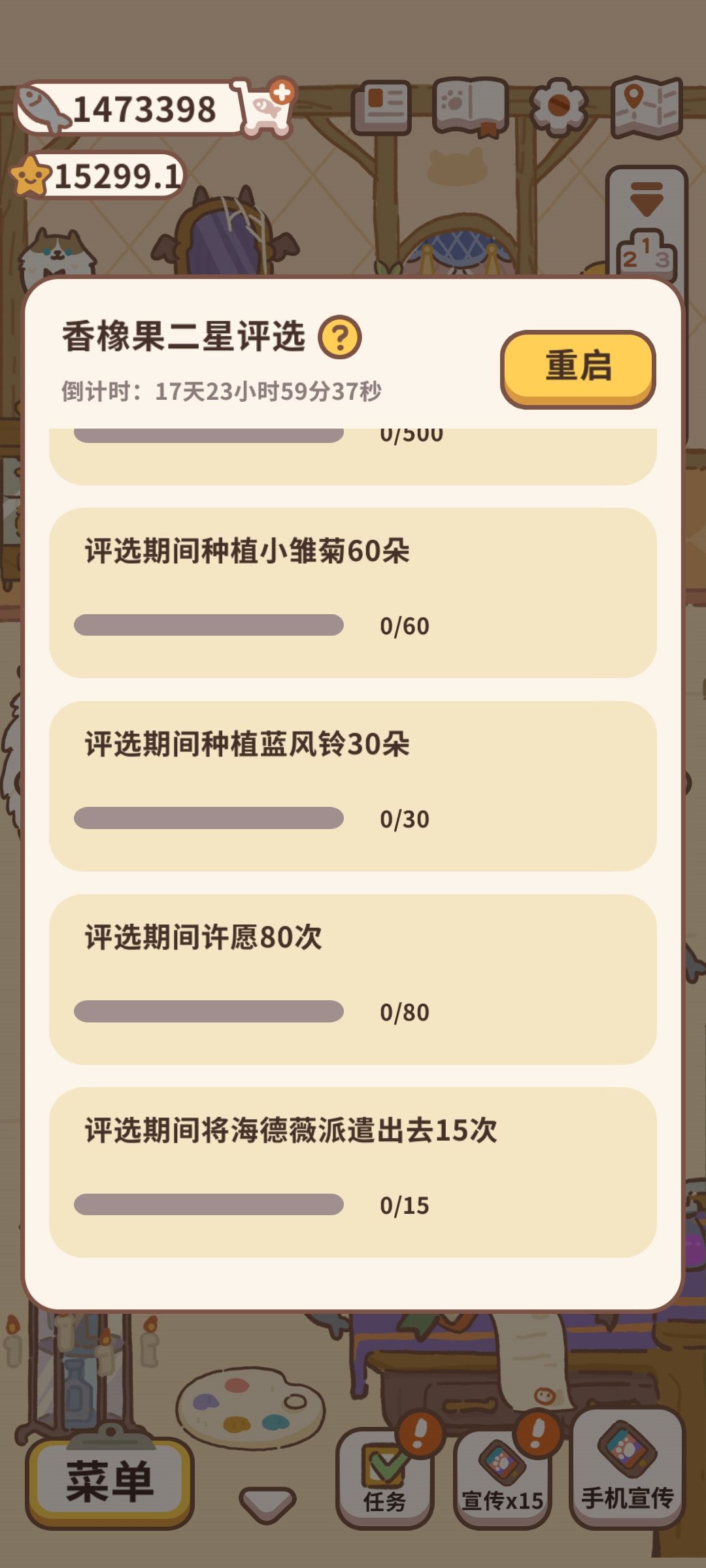 升星要求中需要买的家具都比较贵,如果没买的话最后3-4天就不要随便花小鱼干了,不然可能攒不够