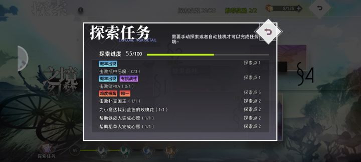 后面探索任务也是一样的,很多隐藏任务需要探索值到达才会出现,所以不要硬刷,而浪费了体力。