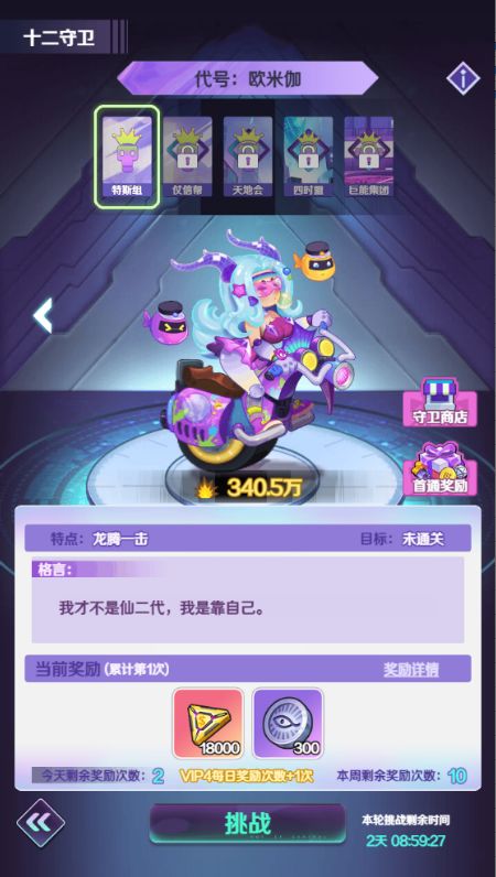 6.在击败一名守卫之后可以解锁该守卫的扫荡功能,使用扫荡快速挑战击败守卫获得奖励。