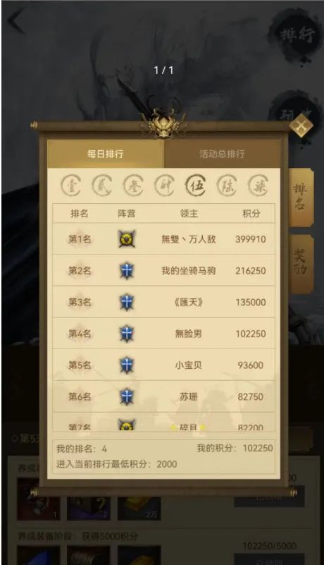 首先了解每个地图刷城需要多少时间,以免错过,打乱节奏。营地15分钟,据点20分钟,堡垒15分钟,要塞30分钟,名城30分钟。提前召集好阵营同伴在圣域集合,大家一起配合开城四队一组,在第五天即将结束第六天马上到来之前我们可以根据时间提前开城,保证过了零点以后打下来,快人一步。节奏不要乱,整个活动最终排名,都取决与你在第六天城战次数。(上个图)如图所示第六天的积分还是非常可观的,虽然我最后出榜了(实在肝不动),但是第六天的积分还是比其它几天所有任务的积分都多。
