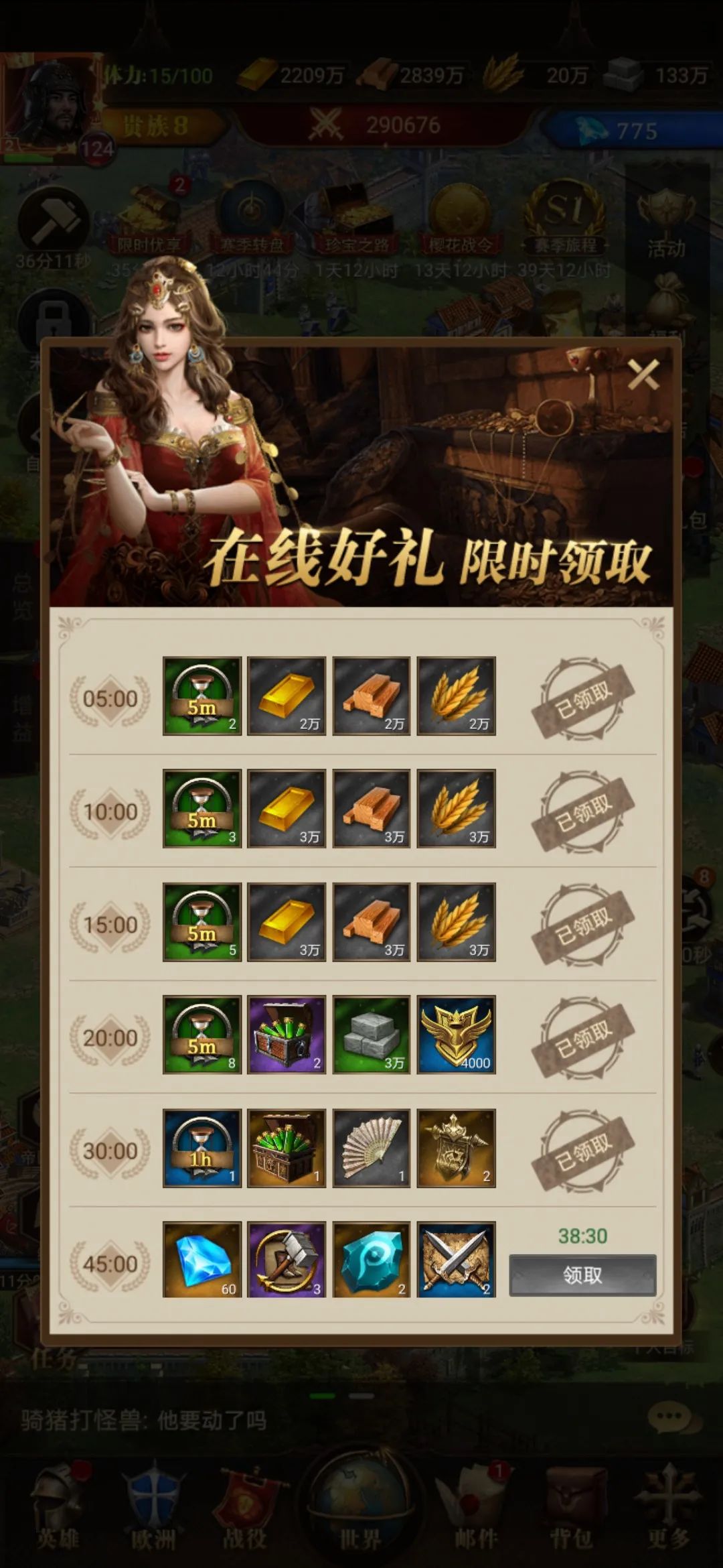 玩家每人可以攻打精英叛军可获得一次免费的钻石领取机会,攻打等级越高奖励越多。这个可以请大神帮忙,所以记得每日攻打精英叛军。还有每天5次的碰瓷,奖励金币木材经验书体力箱,也不要错过哦。5.其他