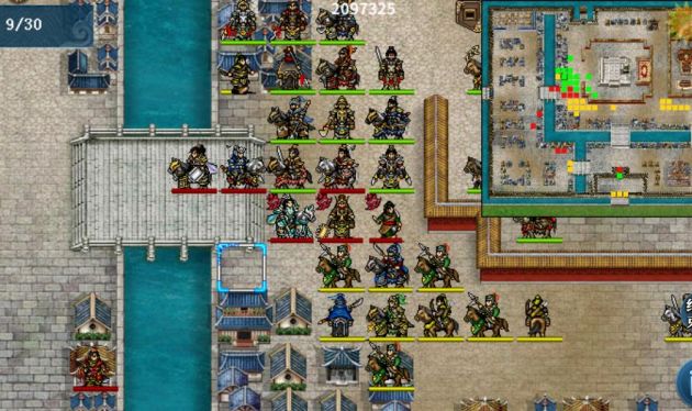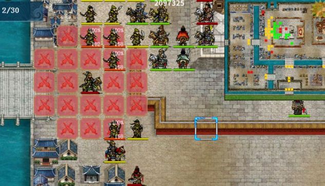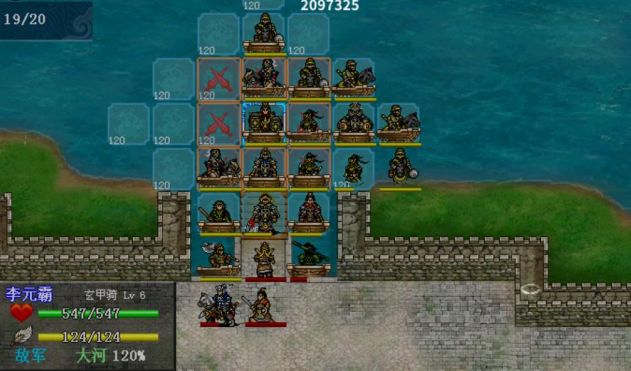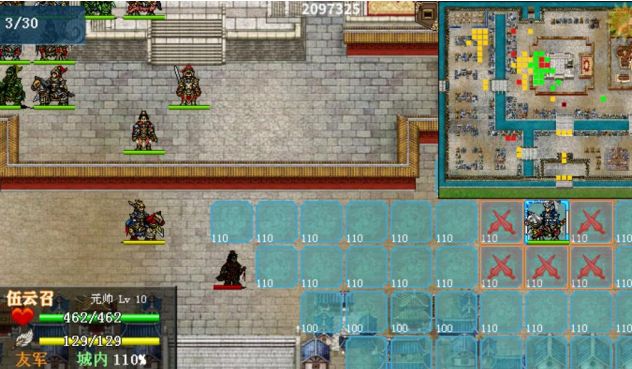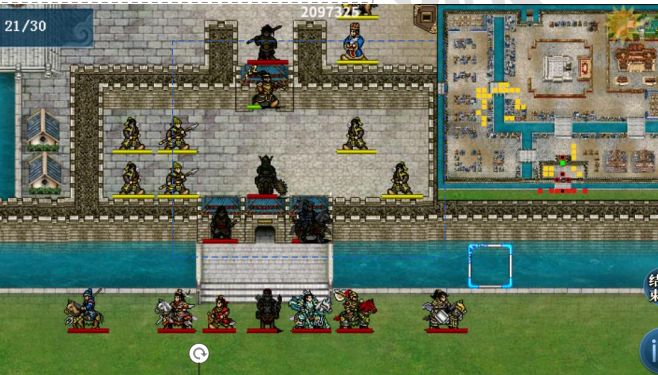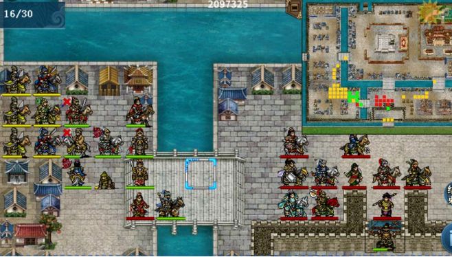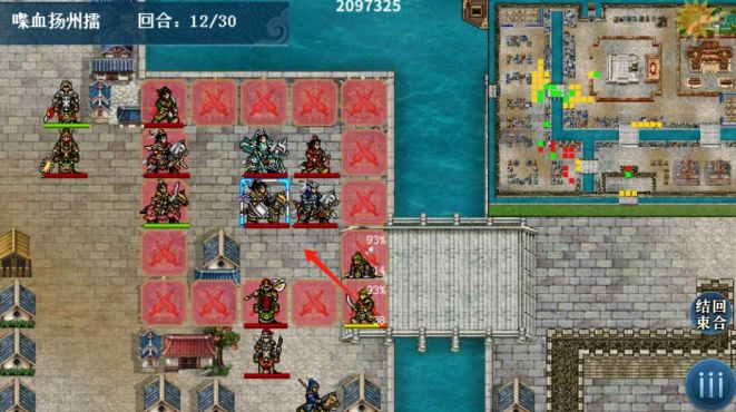 之后就是安心守码头。雄阔海有龙袍回血20%,伍天锡被动回血20%,伍云召一夫当关,并注意利用地形以及敌人小兵的行动顺序。