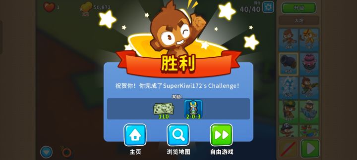 又肉又快的MOAB其实就是纸老虎,直接无脑用050大炮秒杀就行!大炮放哪里都没关系!也是难得的非常简单的高级挑战哦