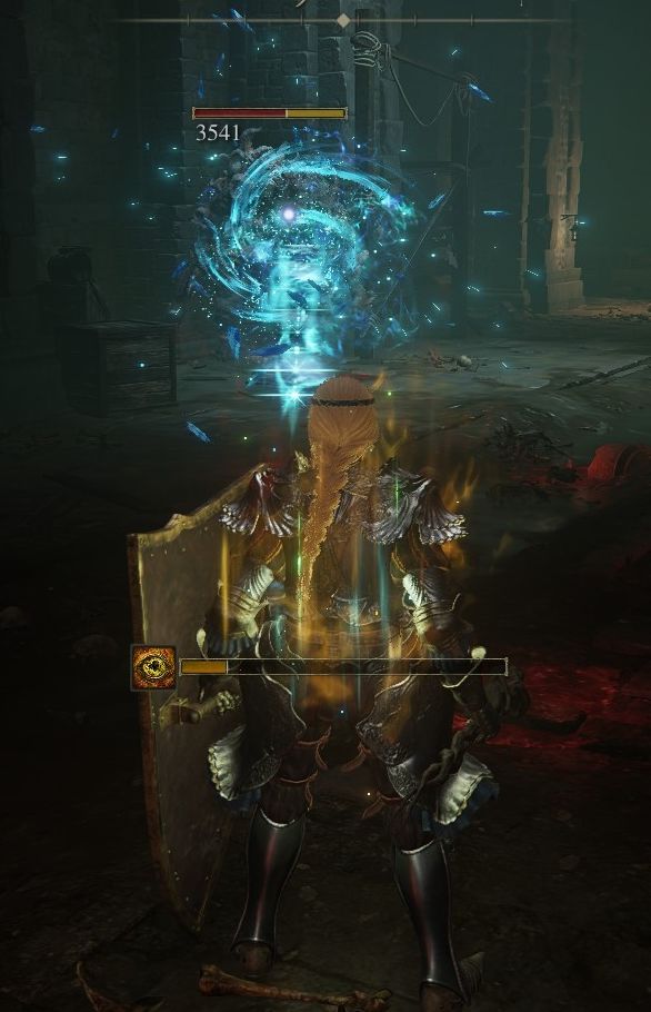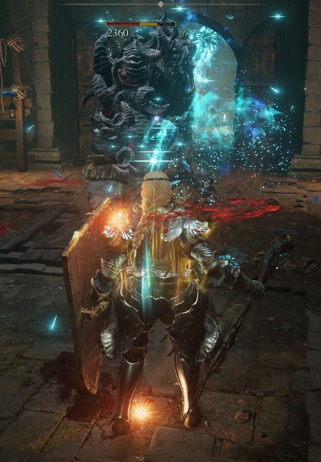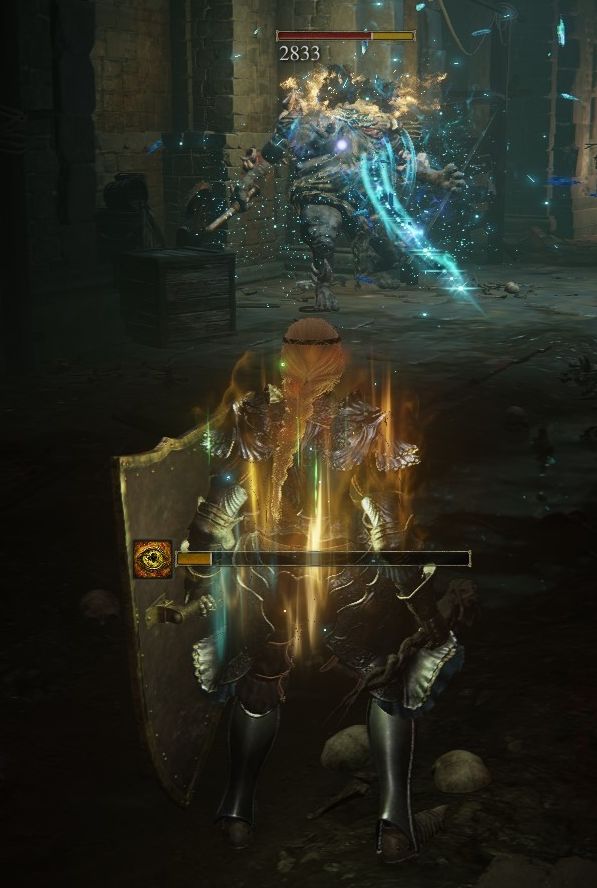 4、感受巨人火焰,高贵的火焰伤害,克制弱火怪、高魔抗怪。并且冲击力很强,连黑剑门口那只龙装大树守卫的攻击都能打断。