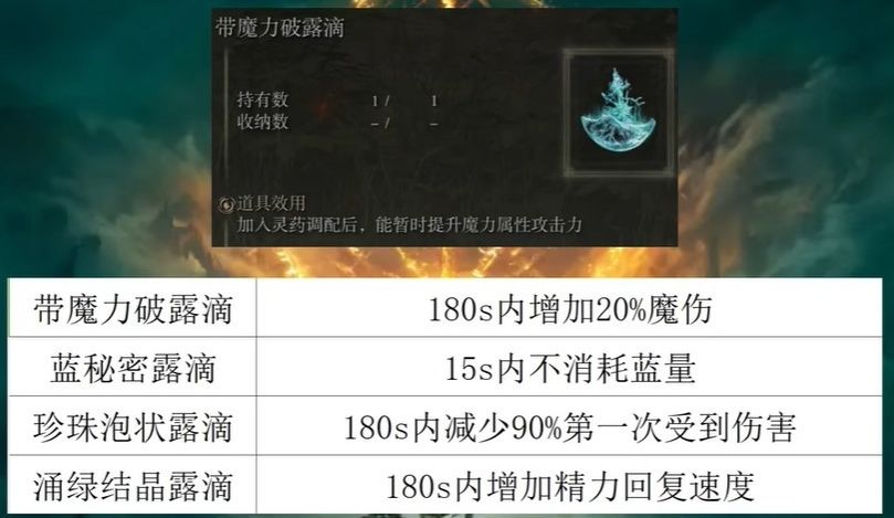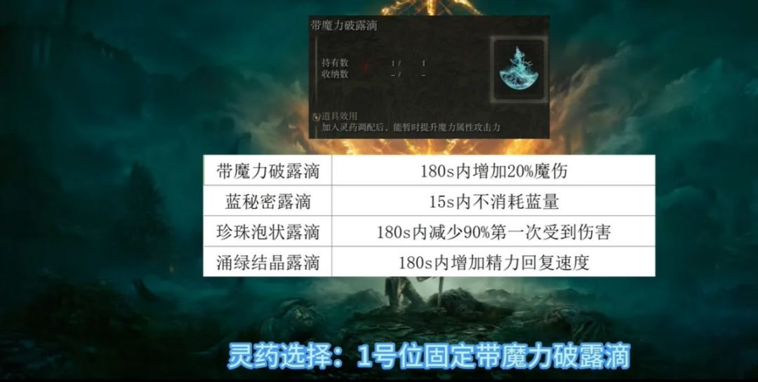 buff只用3个:黄金树立誓、夏玻利利嘶吼、灵药(魔力破露滴)事不过三,不再猴了。