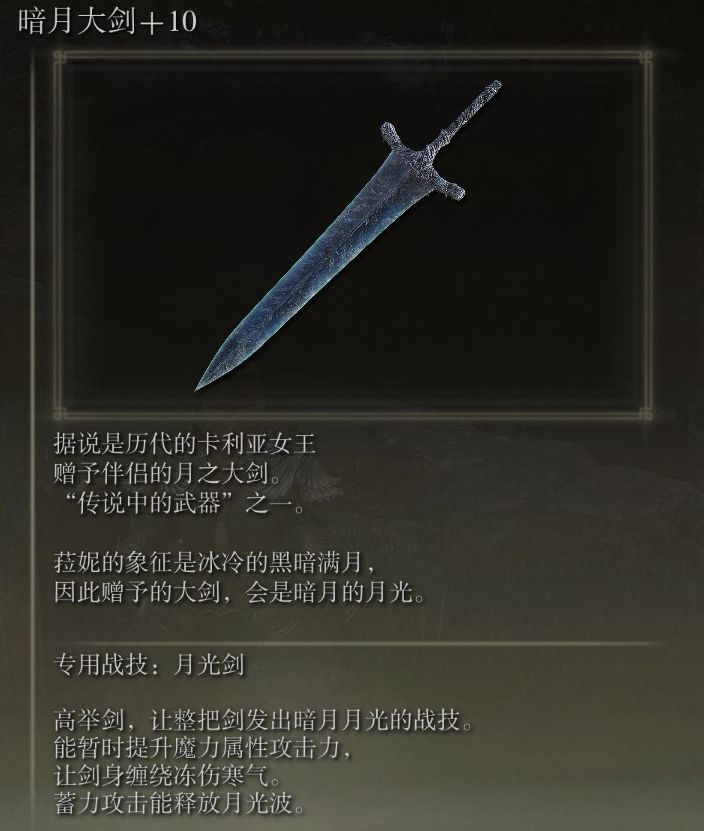 1、暗月大剑。整体强度肯定是很高的,独特的战技,60秒内刀波不耗蓝,非常的爽,唯二的缺点是战技出手速度慢、普攻很一般。