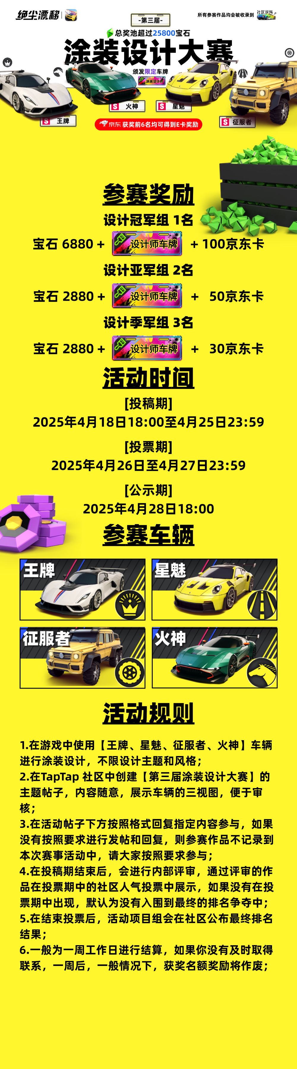 【第三届涂装设计大赛】奖池25800宝石,前6名领限定车牌和京东卡