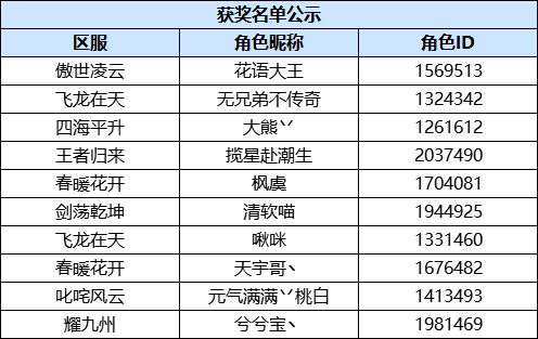 5. 活动期间到奖励发放完毕前,请不要更改角色名或区服,避免奖励发放失败。
