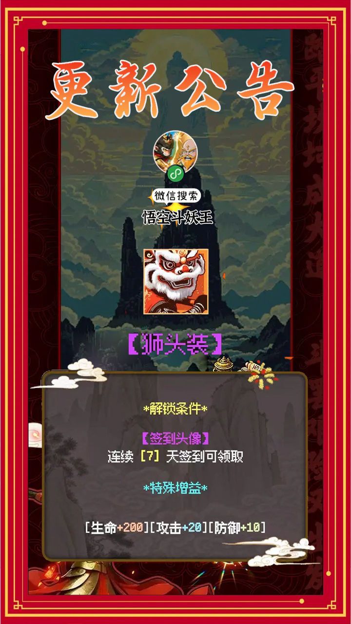 3.活动:七日登录可直接领取限定皮肤“狮头装”(生命+200/防御+10/攻击+20)。
