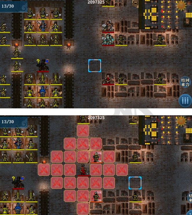 本关是类塔防地图,左右每回合会交替出现敌军,注意清理,防止敌军进城。