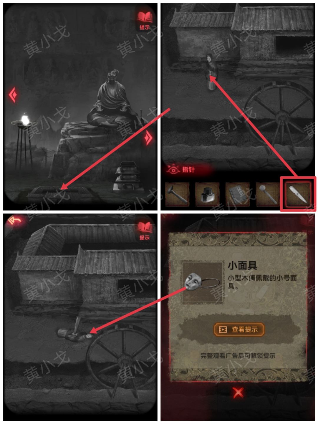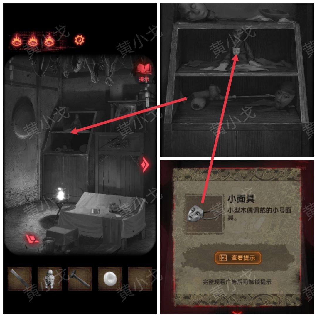 26.点击阴宅模型,用【指针】扎木偶,获得【小面具】