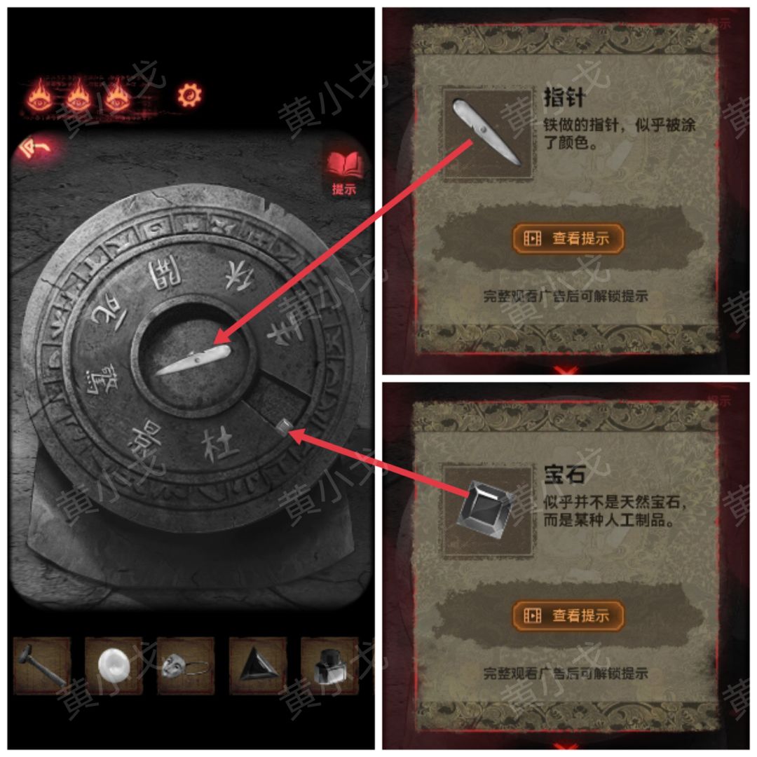 20.打开暗格,获得【宝石】,拿上【指针】