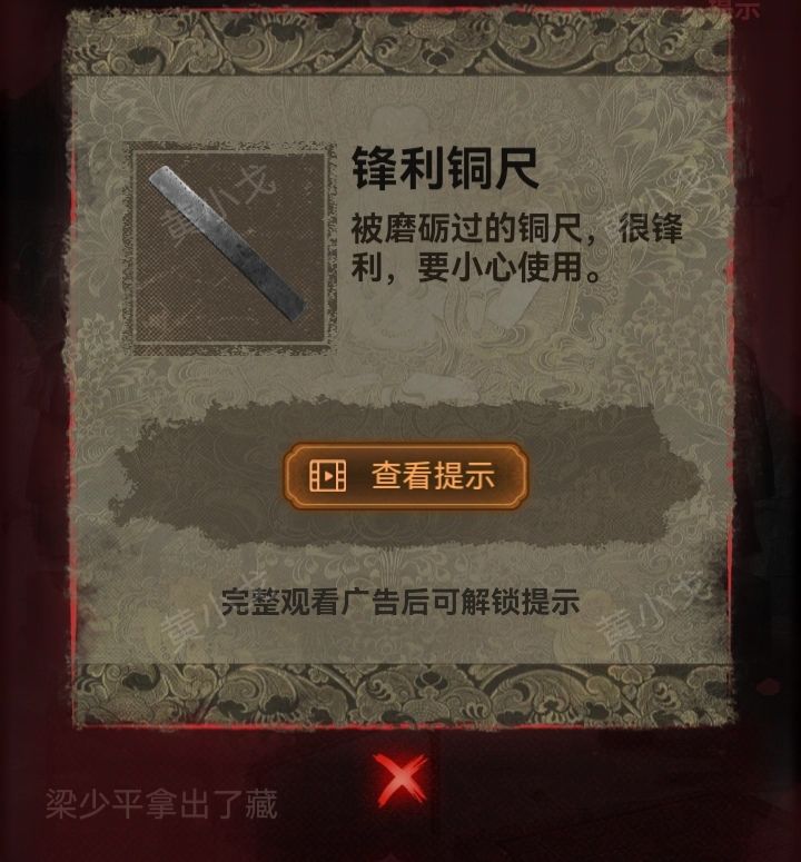 1.剧情结束,获得【锋利铜尺】