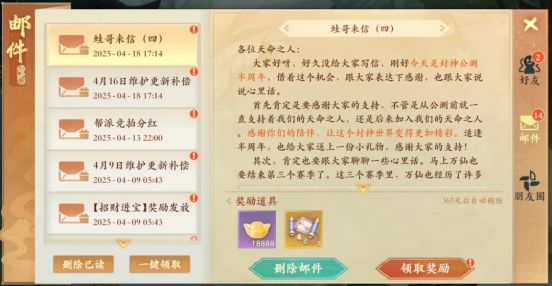 大家好呀,好久没给大家写信,刚好今天是封神公测半周年,借着这个机会,跟大家表达下感谢,也跟大家说说心里话。