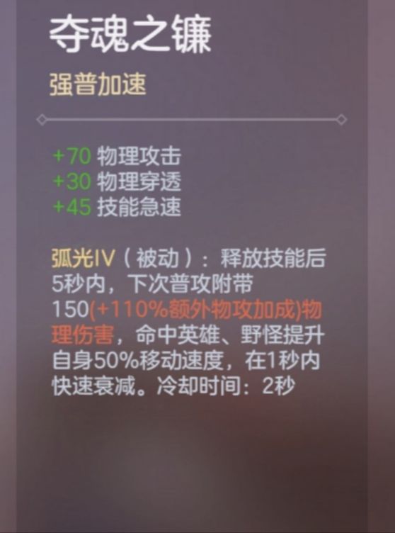其次就是新赛季的全新装备——夺魂之镰,这个装备在施放技能后普攻会获得快速衰减的50%加速,普攻附带强普效果。