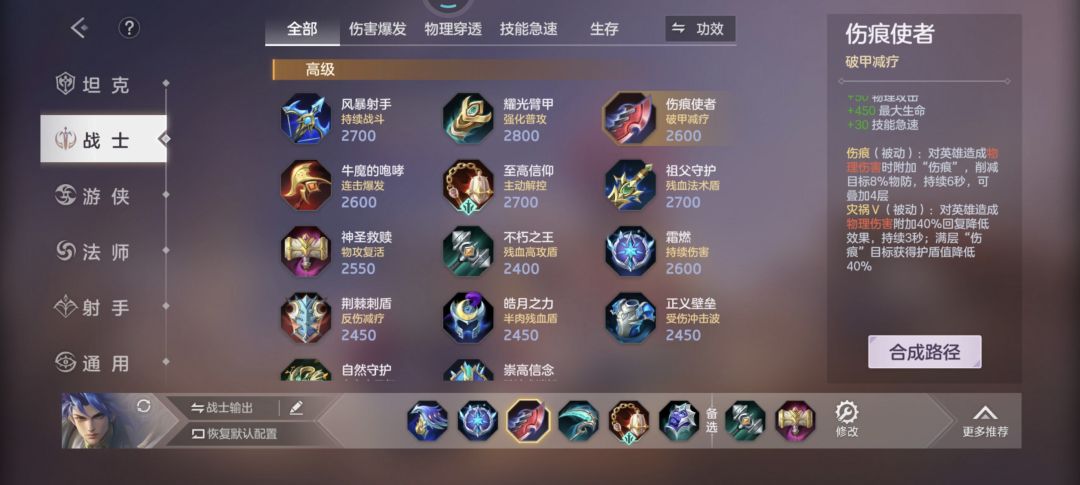 然后就是新赛季不得不提的幻神级装备——伤痕使者,这件装备在以前平平无奇,但是新赛季这次完美的进化让它绽放出完美的性价比。