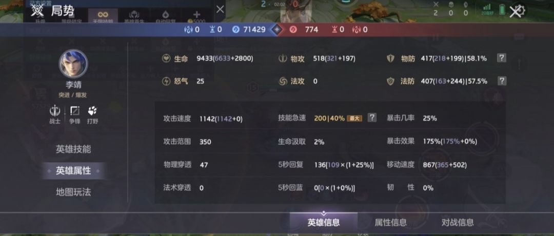 我们可以看看大后期的数值面板,虽然所有的装备都是输出类,但还是具有“满额冷却”,9000+血量,400+双抗,同时在战斗时拥有其他英雄3倍的常驻移速,拥有解控和随缘暴击,一个能抗能打,想走就走的赖皮黏人战士。