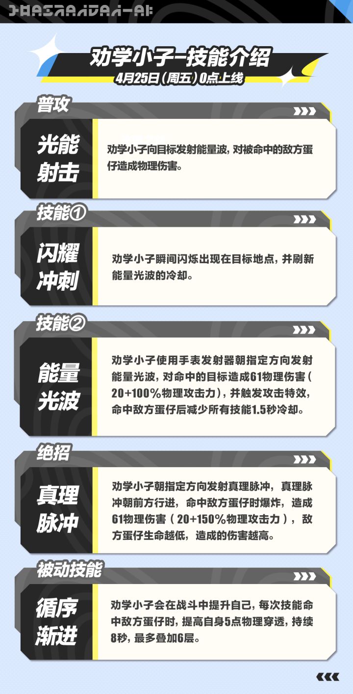 4月25日(下周五)0点,劝学小子重磅加入超燃系列玩法,技能以及专属卡牌大爆料!