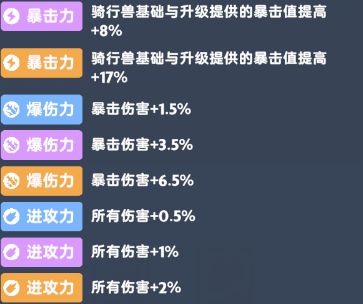 这种类型的数值提高是四个携带的坐骑累计暴击值的百分比加成