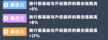 例如携带2只暴击坐骑,则为两只暴击坐骑提供的暴击值相加后乘17%