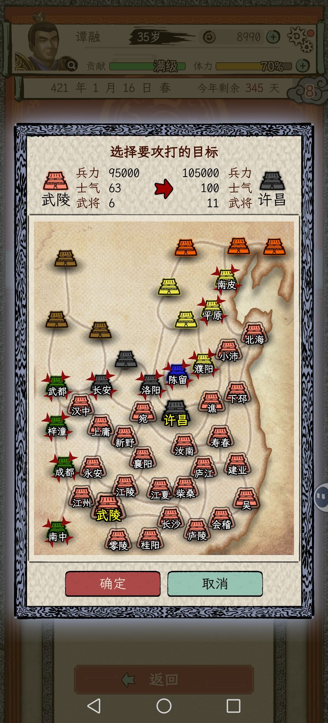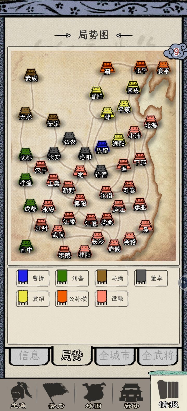9.当上老板可以任命太守 太守每年上供物质 发展城池必不可少 政厅先让手下太守攻打城池,自己在御驾亲征妥妥拿下