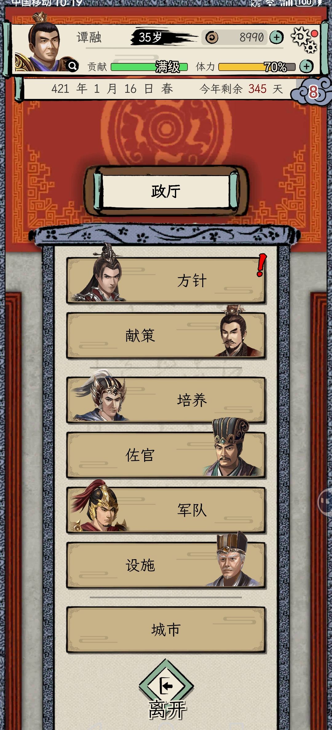 第一 前往政厅 先选择人才 每年可以要求老板给1个人 可以是同僚或者让他给 每年刷任务收集人才就可