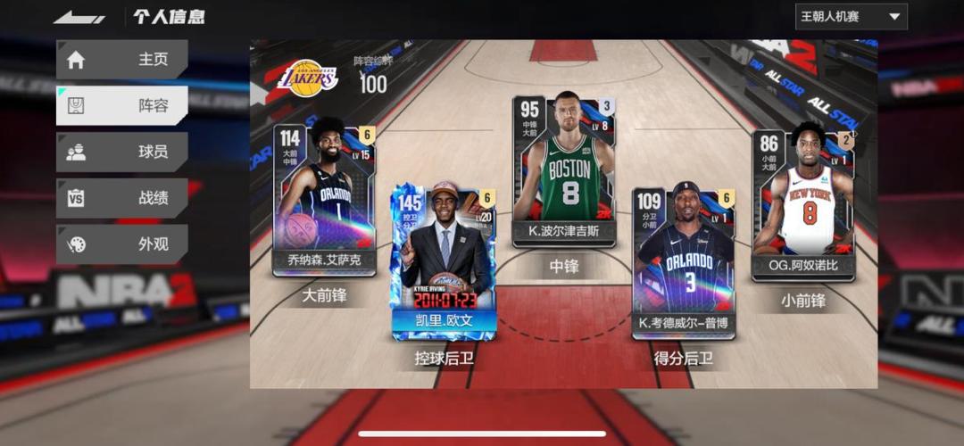 首发需覆盖控卫(PG)、分卫(SG)、小前锋(SF)、大前锋(PF)、中锋(C)五个位置,避免功能重叠。 外线核心:速度型控卫(如库里)搭配投射型分卫(汤普森)。 内线核心:防守型中锋(戈贝尔)搭配全能大前锋(字母哥)。 替补席需覆盖不同功能角色(如三分射手、篮板手、防守专家),确保战术灵活性。