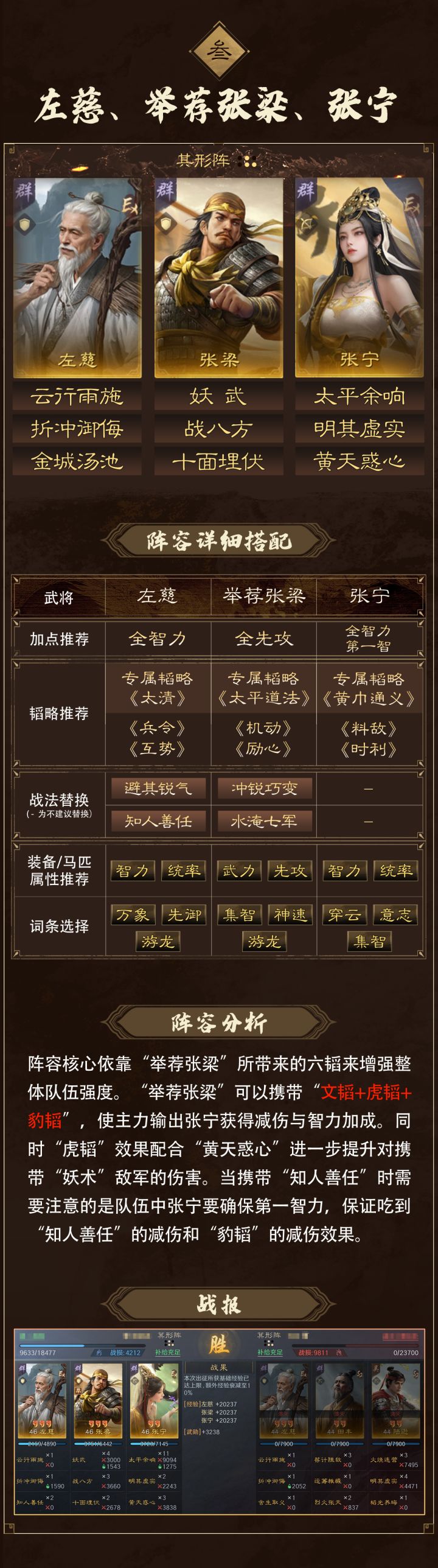 本期【卧龙阁】为大家带来“问鼎赛季「汉祚黄天」战场热门阵容推荐”,每套阵容都附有韬略推荐、加点建议、阵容分析。让我们一起看看,当前战场的热门阵容都有哪些吧!