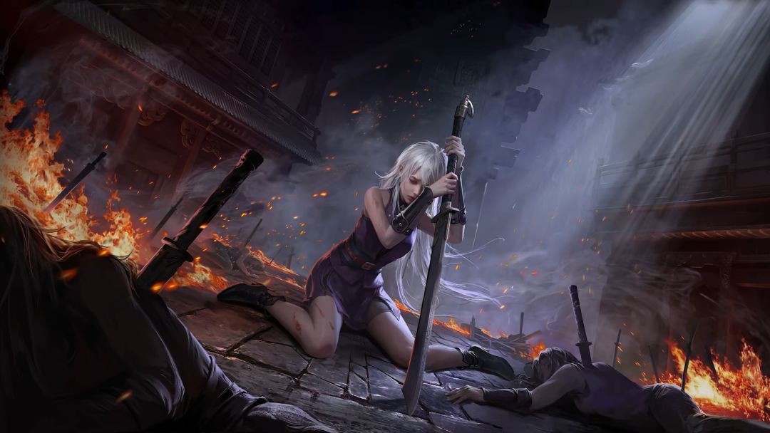 ■冥灯灭尽白发染血,骨裂碎响中斩尽二十七人。独剩一盏幽冥灯,燃尽炼狱幽谷。