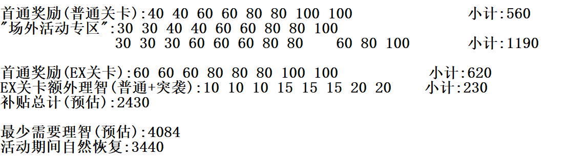 就是说这次活动光靠自然恢复理智是不可能肝完的,而且自然恢复的理智远远不够。