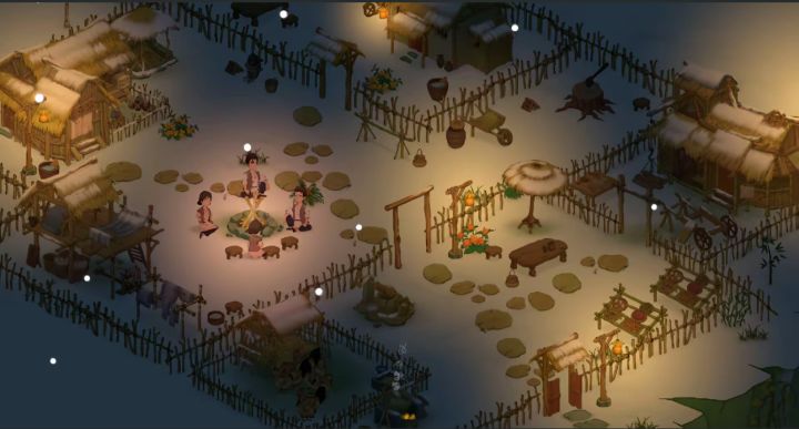 冬季(生存关键):提前囤木材(500+)、兽皮(做衣物),造火塘(室内升温 10°C)。