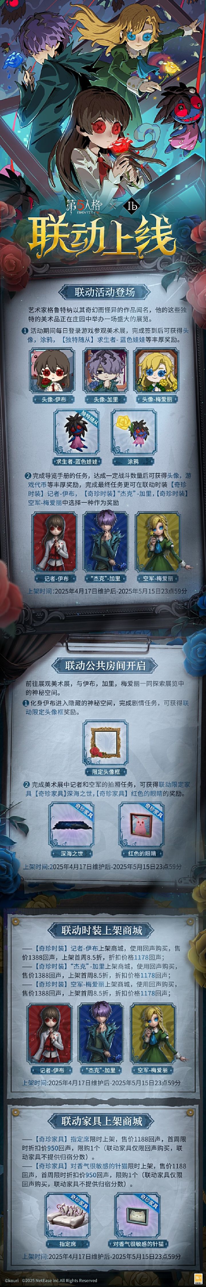 《第五人格》联动Ib啦,活动可以白嫖皮肤‼️