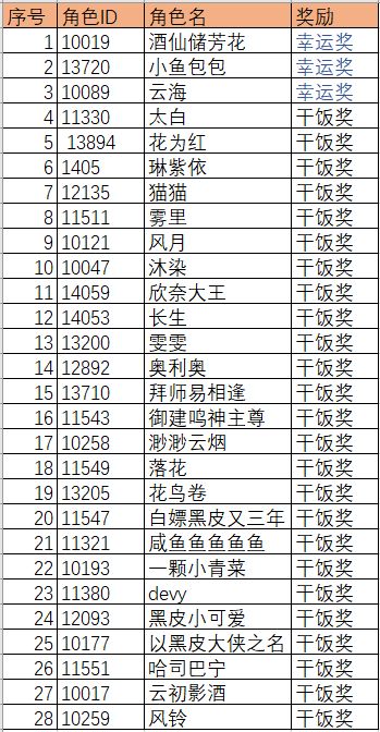 所有参与此次活动未中幸运奖的玩家将获得干饭奖励。