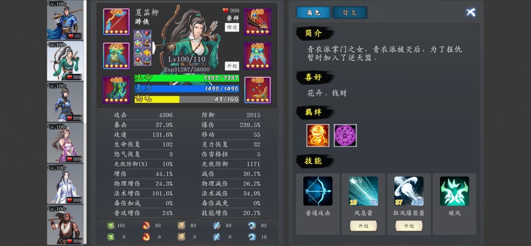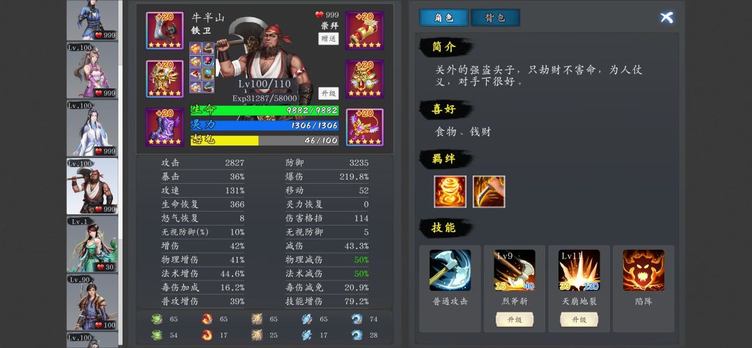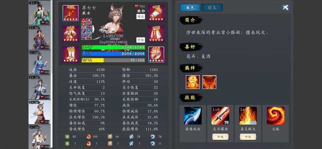 剩下的都辅助就行了,最好堆点坦度免得暴毙。主角用那个送的武器神话,给唐风加攻速,通关时候我都还用的4星橙装懒得换了